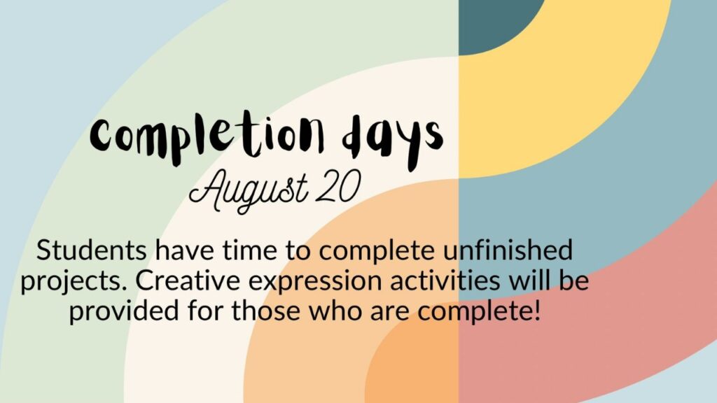 18 EXTRA DAY FOR READING OR FINISHING PROJECTS | 19 | 20 EXTRA DAY FOR READING OR FINISHING PROJECTS | 21 BACK TO SCHOOL | 22 | 23 | 24 |